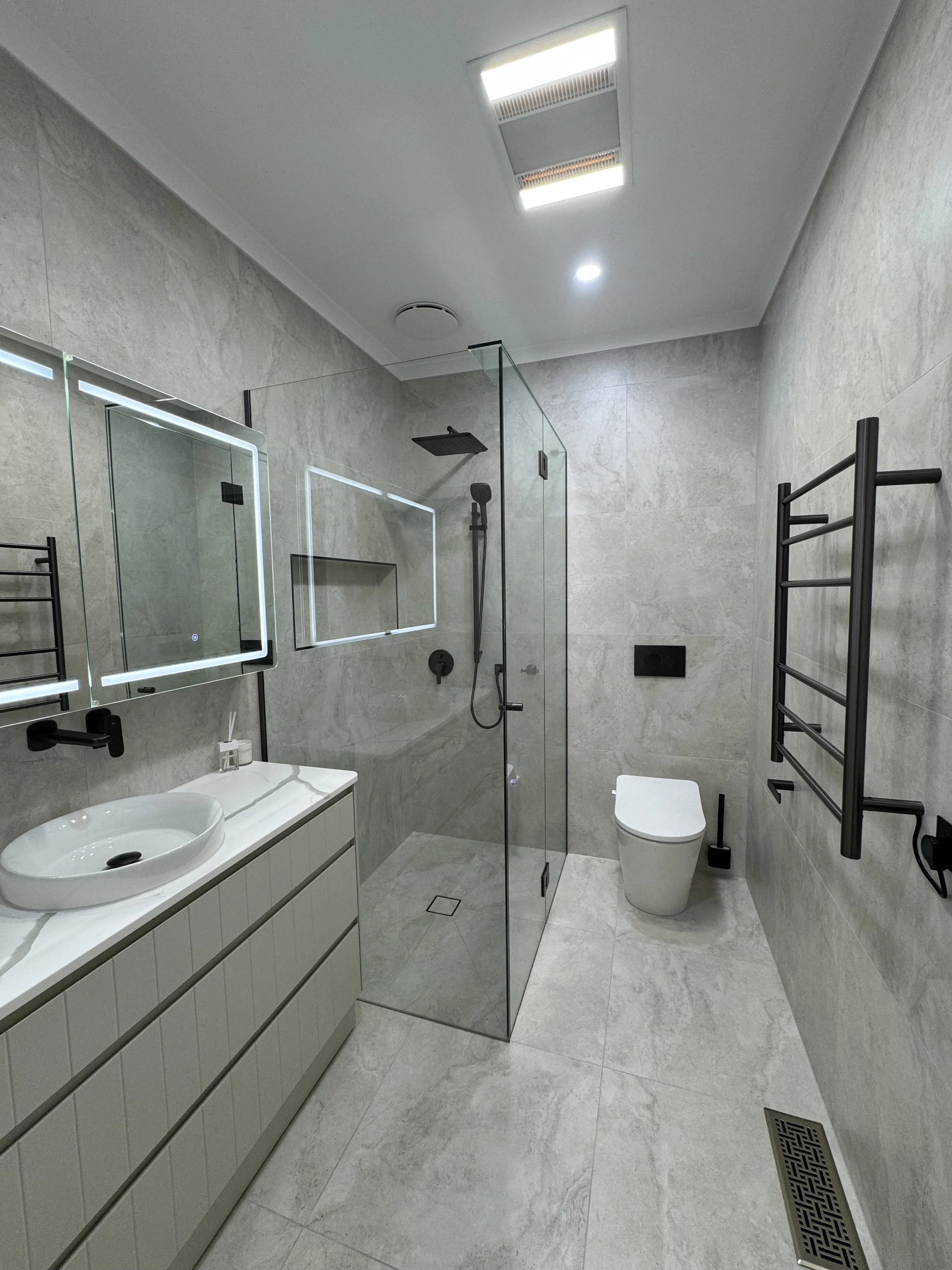 "Our Greenvale client wanted a bathroom that was both stylish and functional. The result? A modern design with custom storage and luxe finishes."